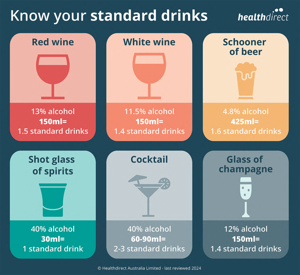 In Australia, a standard drink is always equal to 10 grams of pure alcohol. To help you track your intake, the Department of Health provides a Standard Drinks Guide, which includes visual tools and calculators.